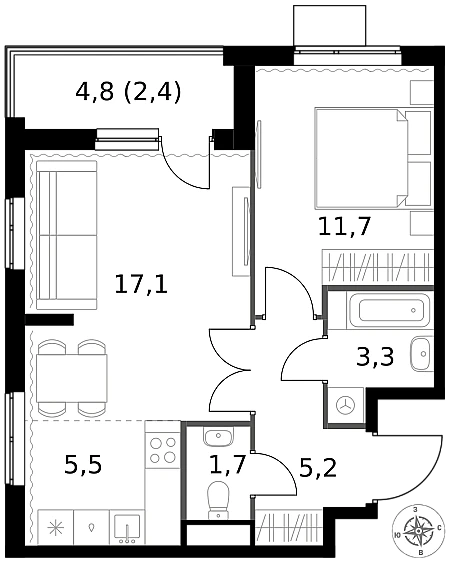 Купить 1к квартиру 33 м² в ЖК Дзен-кварталы