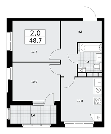Купить 2к квартиру 48 м² в ЖК Дзен-кварталы