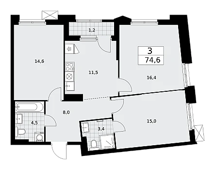 Купить 2к квартиру 56 м² в ЖК Дзен-кварталы