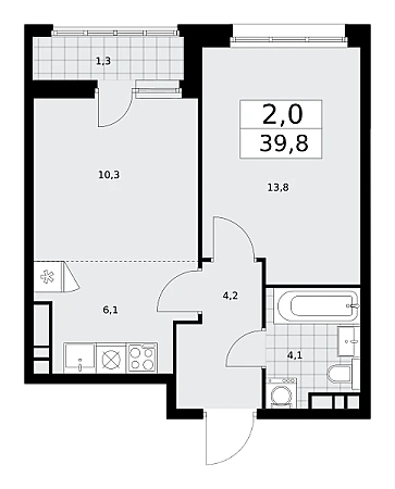 Купить 2к квартиру 39 м² в ЖК Дзен-кварталы