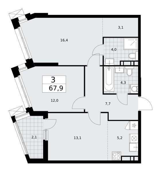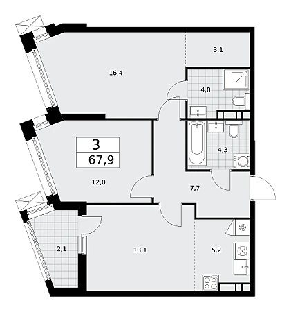 Купить 3к квартиру 67 м² в ЖК Дзен-кварталы