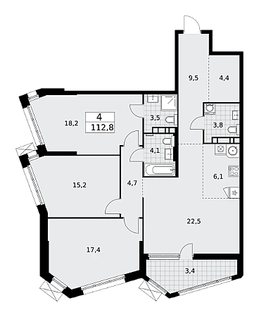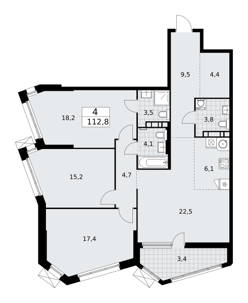 Купить 4к квартиру 112 м² в ЖК Дзен-кварталы