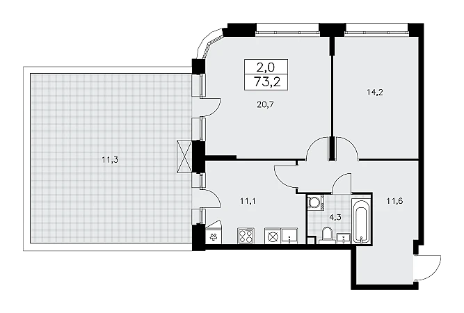 Продаётся 2-комнатная квартира, площадью 73,2 кв. м на 2-м этаже дома комфорт-класса в ЖК "Прокшино". Квартира с функциональной планировкой: большие окна, высота потолка 2,99 м, терраса.