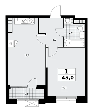 Продаётся 1-комнатная квартира, площадью 45,0 кв. м на 15-м этаже дома комфорт-класса в ЖК "Прокшино". Квартира с функциональной планировкой: большие окна, высота потолка 2,95 м, балкон.