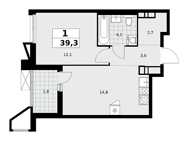 Продаётся 1-комнатная квартира, площадью 39,3 кв. м на 11-м этаже дома комфорт-класса в ЖК "Прокшино". Квартира с функциональной планировкой: большие окна, высота потолка 2,95 м, балкон, гардероб.