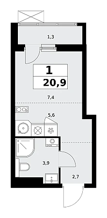 Купить 1к квартиру 20 м² в ЖК Бунинские кварталы