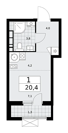 Купить 1к квартиру 20 м² в ЖК Бунинские кварталы