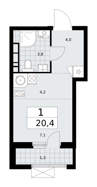 Продаётся квартира-студия, площадью 20,4 кв. м на 8-м этаже дома комфорт-класса в ЖК "Бунинские кварталы". Квартира с функциональной планировкой: большие окна, высота потолка 2,95 м, балкон.