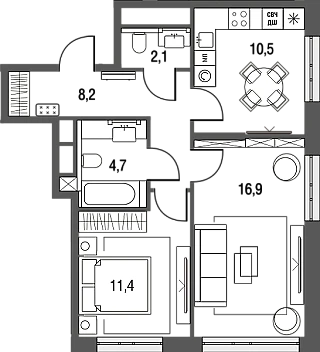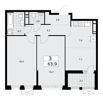 Купить 2к квартиру 49 м² в ЖК Бунинские кварталы
