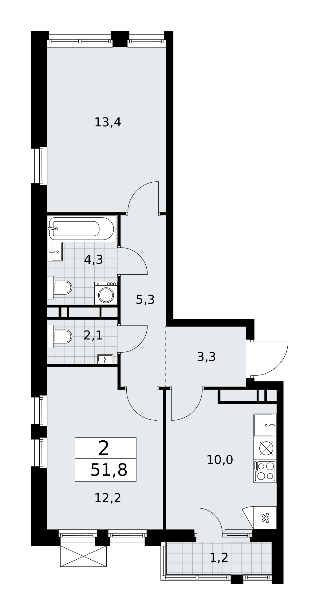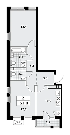 Купить 2к квартиру 51 м² в ЖК Бунинские кварталы