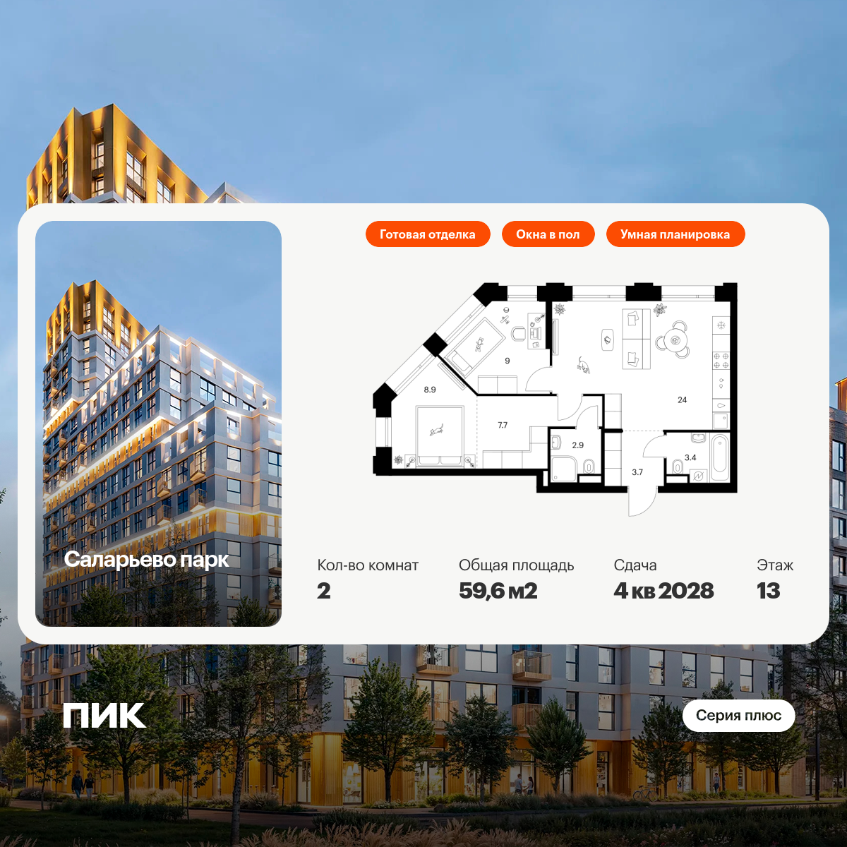 Купить 3к квартиру 69 м² в ЖК Бунинские кварталы