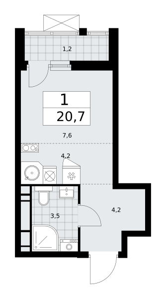 Продаётся квартира-студия, площадью 20,7 кв. м на 17-м этаже дома комфорт-класса в ЖК "Бунинские кварталы". Квартира с функциональной планировкой: большие окна, высота потолка 2,95 м, балкон.