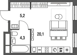 Купить 1к квартиру 20 м² в ЖК Бунинские кварталы