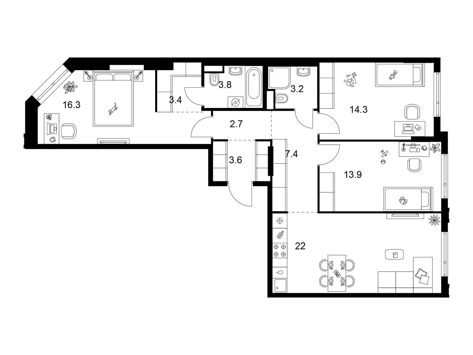 Продаётся 4-комнатная квартира, площадью 91,5 кв. м на 19-м этаже дома бизнес-класса в ЖК "Бунинские кварталы". Квартира с функциональной планировкой: большие окна, высота потолка 3,1 м, балкон, гардероб, мастер-спальня.