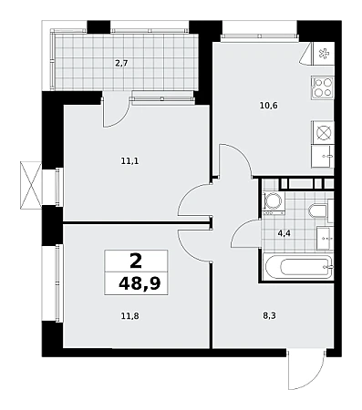 Купить 2к квартиру 48 м² в ЖК Бунинские кварталы