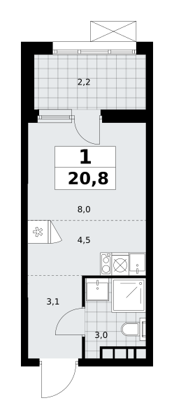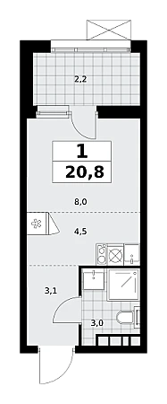 Продаётся квартира-студия, площадью 20,8 кв. м на 9-м этаже дома бизнес-класса в ЖК "Бунинские кварталы". Квартира с функциональной планировкой: большие окна, высота потолка 3,1 м, балкон.