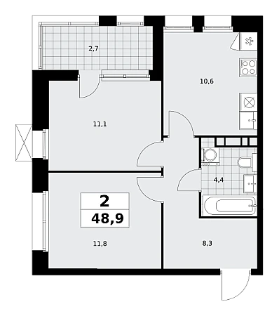 Купить 2к квартиру 48 м² в ЖК Бунинские кварталы