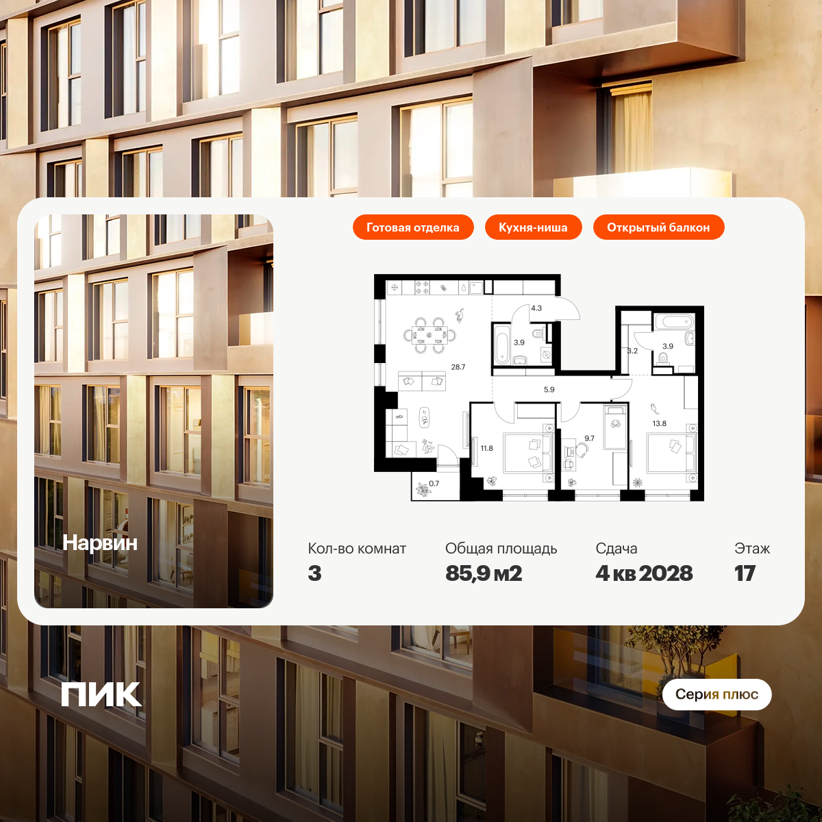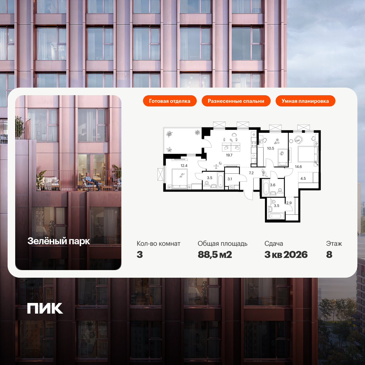 Купить 3к квартиру 88 м² в ЖК Бунинские кварталы