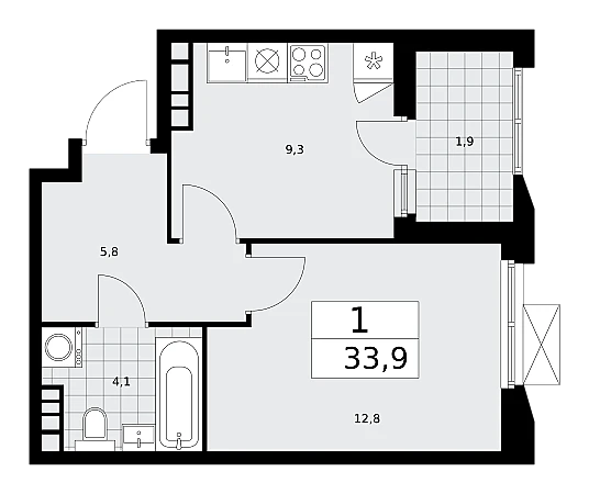 Купить 1к квартиру 33 м² в ЖК Бунинские кварталы