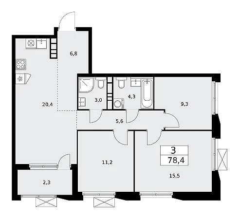 Продаётся 3-комнатная квартира, площадью 78,4 кв. м на 20-м этаже дома комфорт-класса в ЖК "Бунинские кварталы". Квартира с функциональной планировкой: большие окна, высота потолка 2,95 м, балкон.