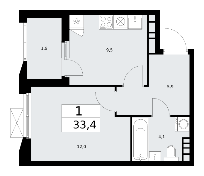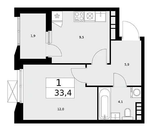 Купить 1к квартиру 33 м² в ЖК Бунинские кварталы