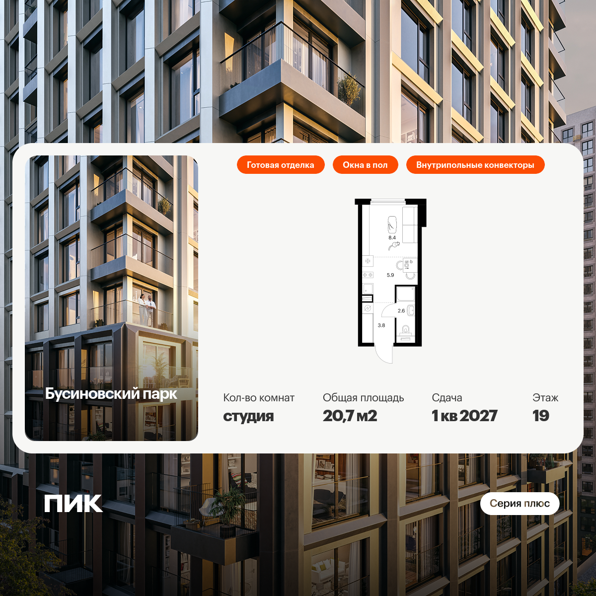 Купить 1к квартиру 33 м² в ЖК Бунинские кварталы