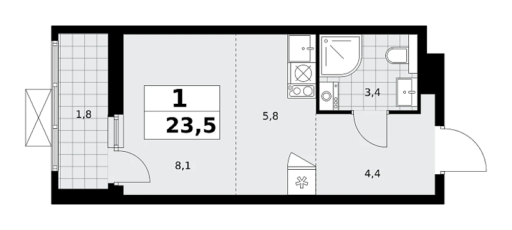 Купить 1к квартиру 23 м² в ЖК Бунинские кварталы