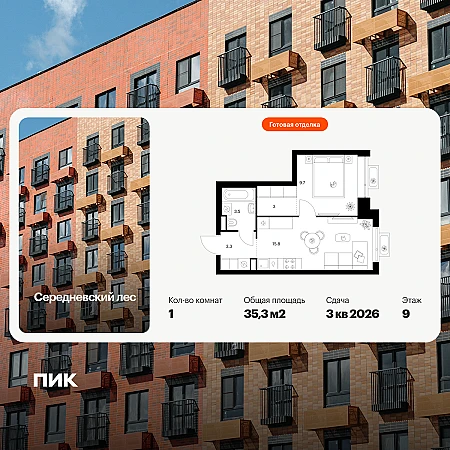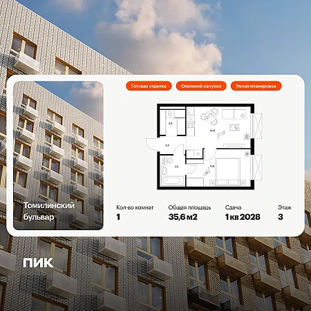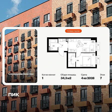 Купить 1к квартиру 33 м² в ЖК Бунинские кварталы