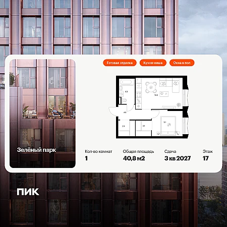 Купить 2к квартиру 39 м² в ЖК Бунинские кварталы