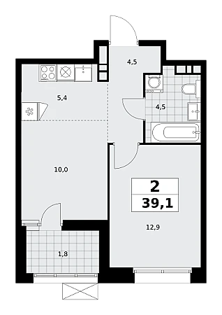 Купить 2к квартиру 39 м² в ЖК Бунинские кварталы