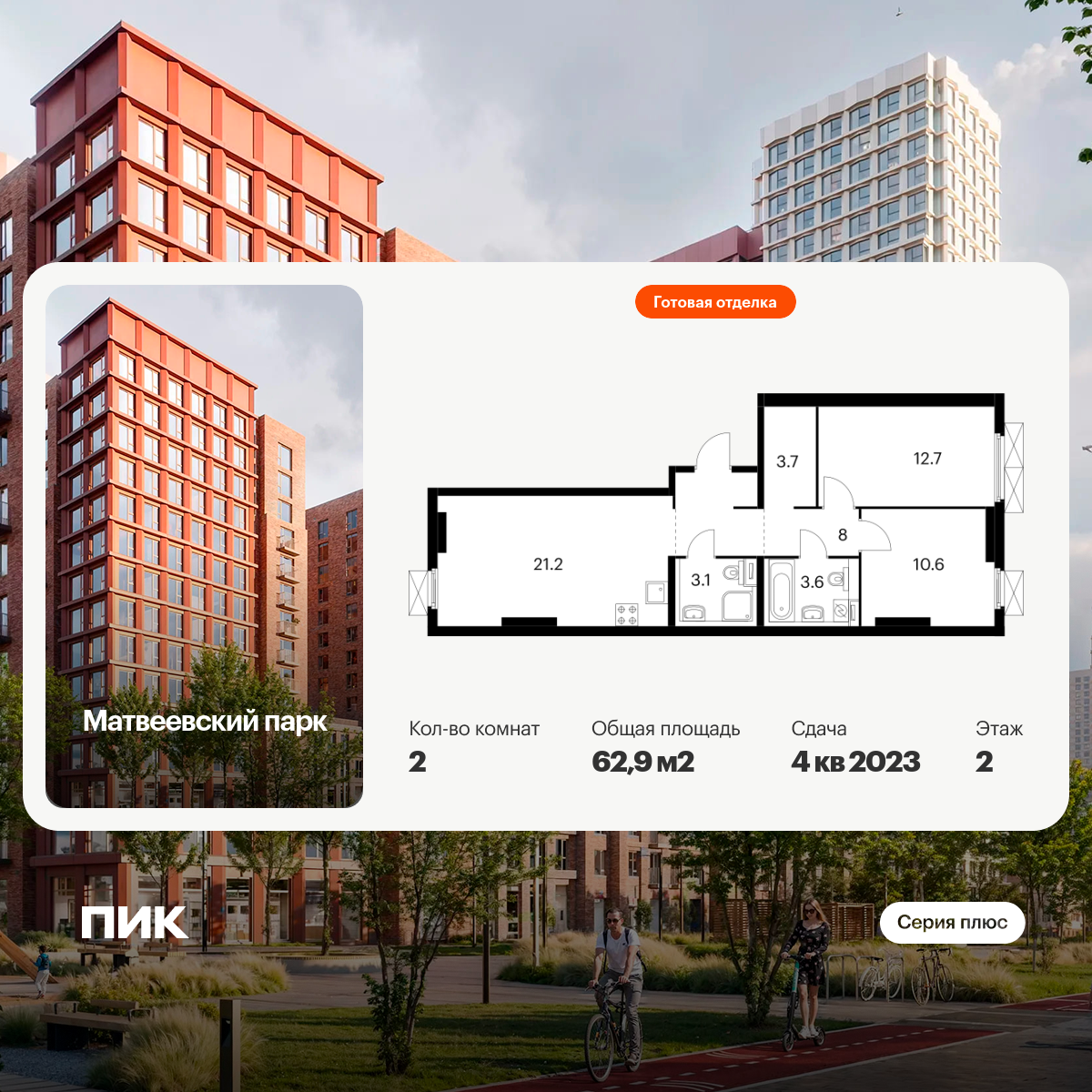 Отделка дизайнерская. Есть варианты квартир с предчистовой отделкой white box и без отделки в других корпусах ЖК.