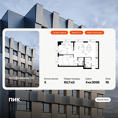 Купить 2к квартиру 54 м² в ЖК Южные сады