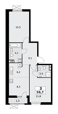 Купить 3к квартиру 59 м² в ЖК Южные сады