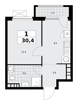 Купить 1к квартиру 30 м² в ЖК Южные сады