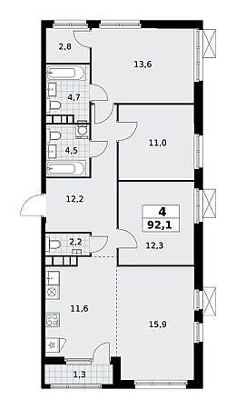 Купить 4к квартиру 92 м² в ЖК Южные сады