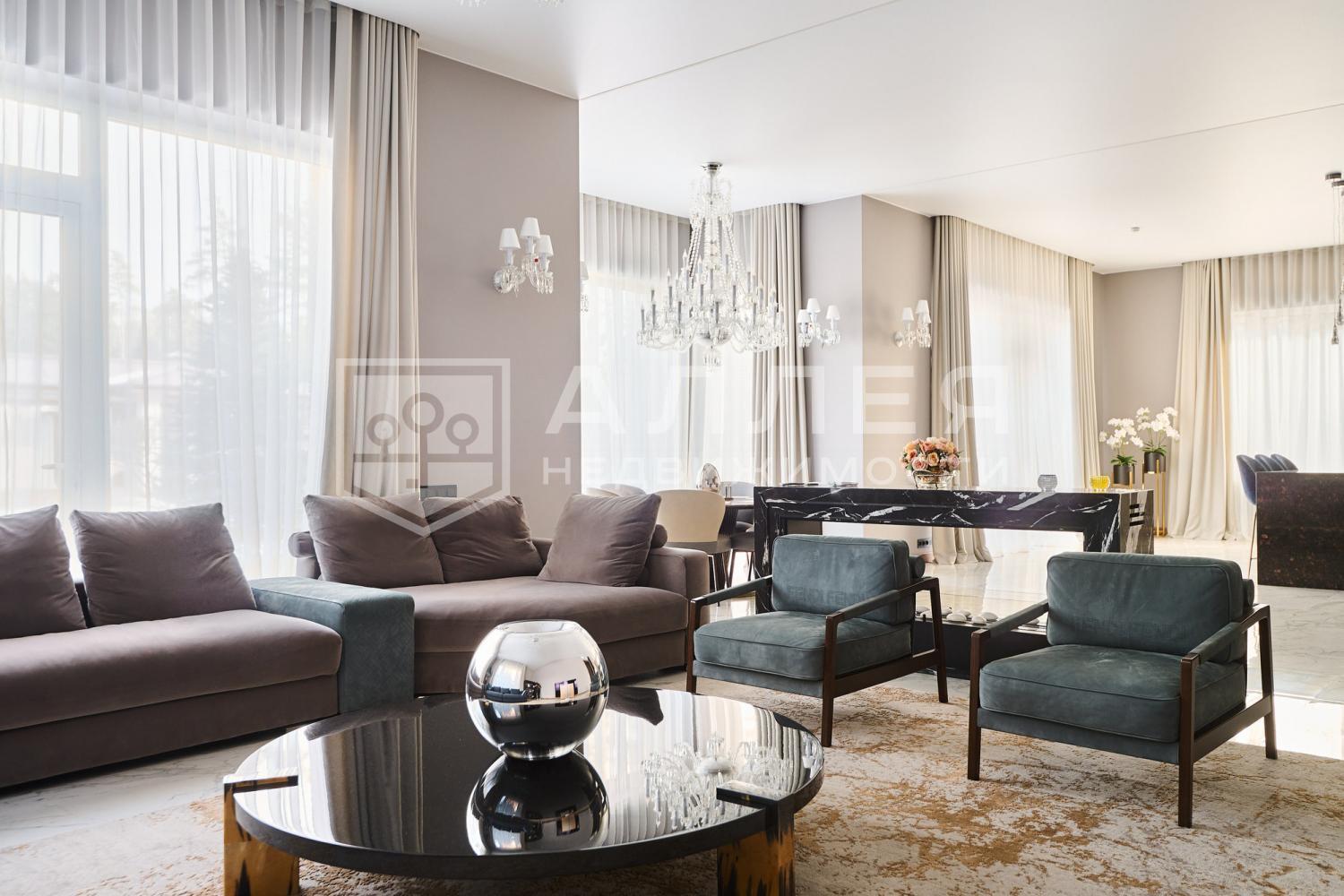 Современный стильный дом под ключ, площадью 800 м2. Дом просторный с высокими потолками и панорамными окнами. В доме установлен лифт, для комфортного перемещения. В интерьере дома установлена дорогая качественная брендовая мебель. Установлено видеонаблюдение в доме и на участке.