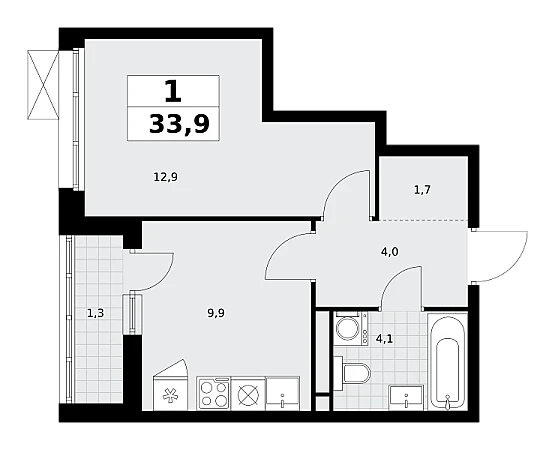 Продаётся 1-комнатная квартира, площадью 33,9 кв. м на 4-м этаже дома комфорт-класса в ЖК "Родные кварталы". Квартира с функциональной планировкой: большие окна, высота потолка 2,95 м, балкон, гардероб.