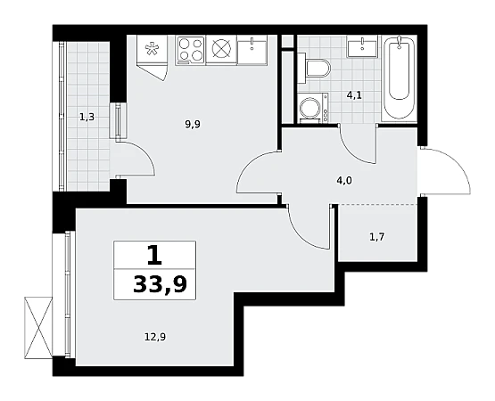 Купить 1к квартиру 33 м² в ЖК Родные кварталы