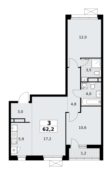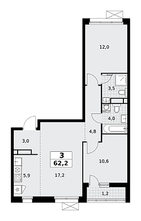 Купить 3к квартиру 62 м² в ЖК Родные кварталы