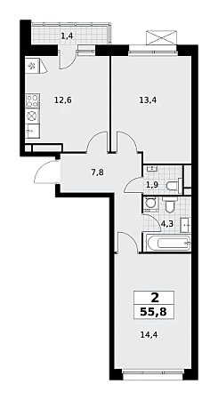Купить 2к квартиру 55 м² в ЖК Родные кварталы