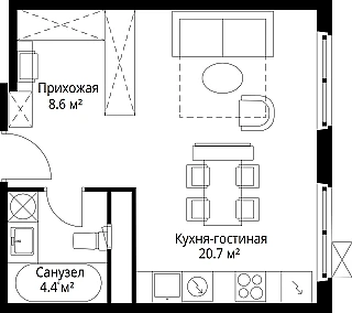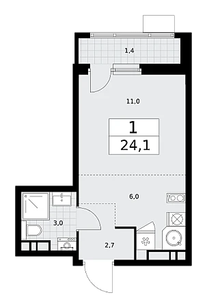 Купить 1к квартиру 24 м² в ЖК Родные кварталы