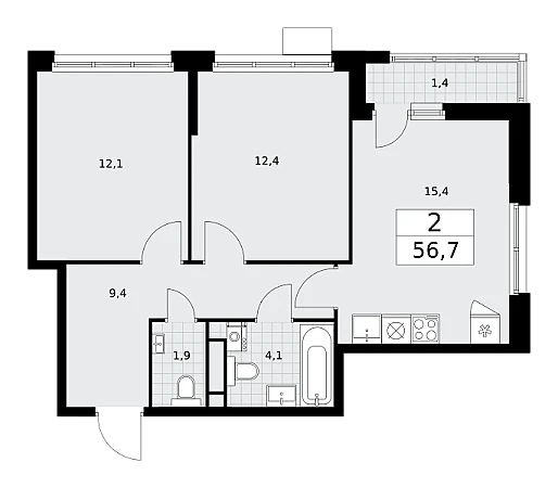 Купить 2к квартиру 56 м² в ЖК Родные кварталы