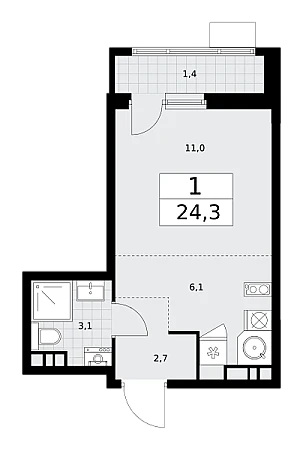 Купить 1к квартиру 24 м² в ЖК Родные кварталы