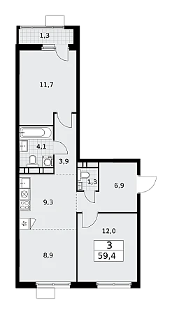 Купить 3к квартиру 59 м² в ЖК Родные кварталы