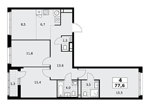 Купить 3к квартиру 96 м² в ЖК Родные кварталы