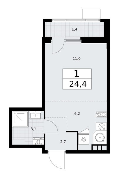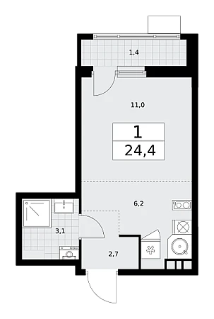 Купить 1к квартиру 24 м² в ЖК Родные кварталы