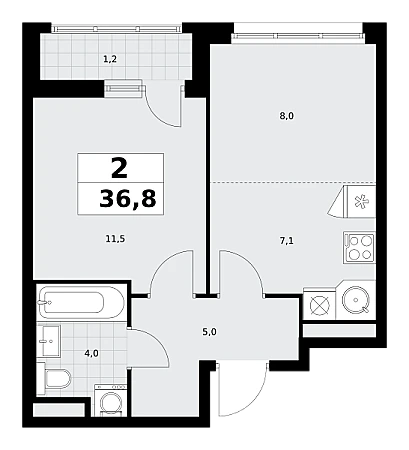 Купить 2к квартиру 36 м² в ЖК Родные кварталы