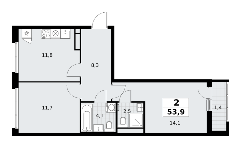 Продаётся 2-комнатная квартира, площадью 53,9 кв. м на 8-м этаже дома комфорт-класса в ЖК "Родные кварталы". Квартира с функциональной планировкой: большие окна, высота потолка 2,95 м, балкон, мастер-спальня.