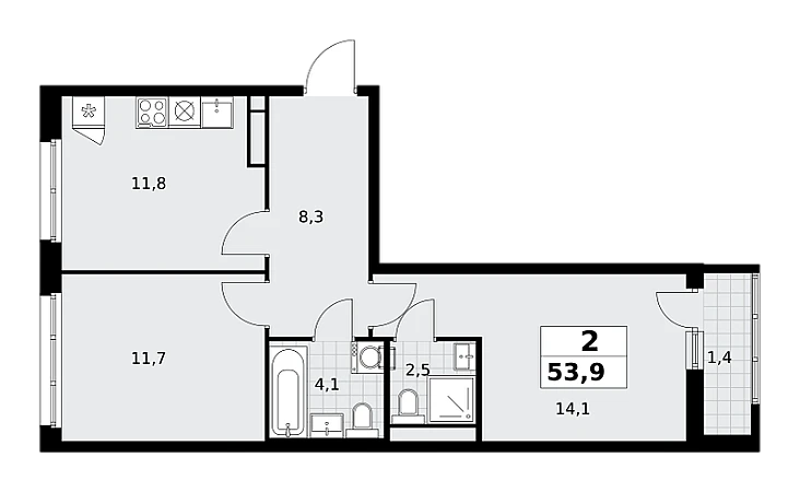 Продаётся 2-комнатная квартира, площадью 53,9 кв. м на 7-м этаже дома комфорт-класса в ЖК "Родные кварталы". Квартира с функциональной планировкой: большие окна, высота потолка 2,95 м, балкон, мастер-спальня.