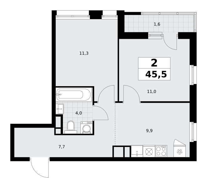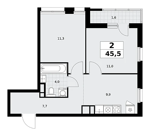 Продаётся 2-комнатная квартира, площадью 45,5 кв. м на 9-м этаже дома комфорт-класса в ЖК "Родные кварталы". Квартира с функциональной планировкой: большие окна, высота потолка 2,95 м, балкон.